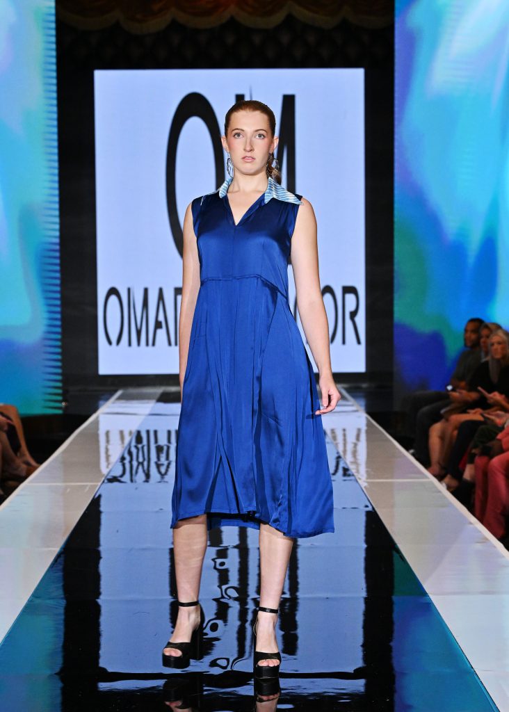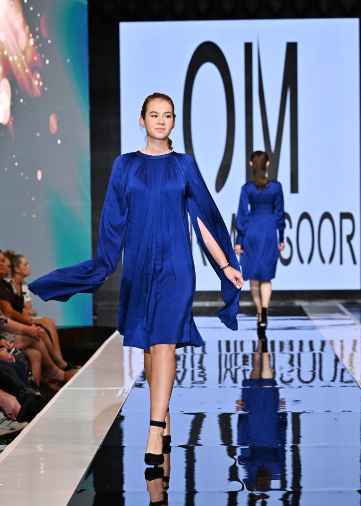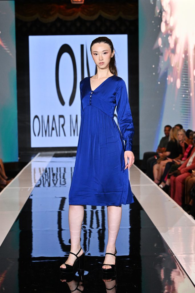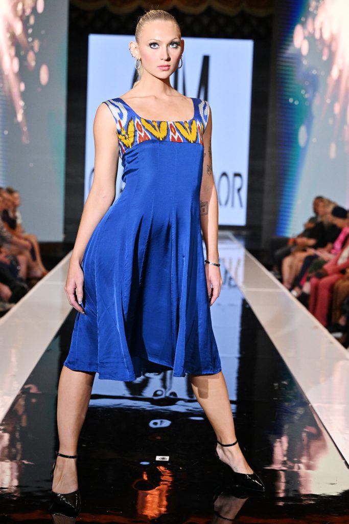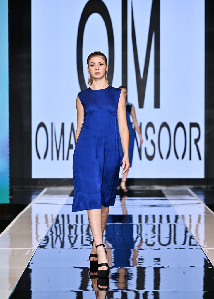 Titled Lapis Lazuli, Mansoor blended old-world glamour with a Gen X edge, showcasing his signature silk creations. The collection featured a range of dresses, from knee-length to full-length, sleeveless to long-sleeved, all adorned with semi-precious stones and detailed Uzbek Ikat trimmings. The mix of luxurious fabrics and intricate embellishments made it clear—his designs speak to a broader audience, offering timeless elegance with a modern twist.